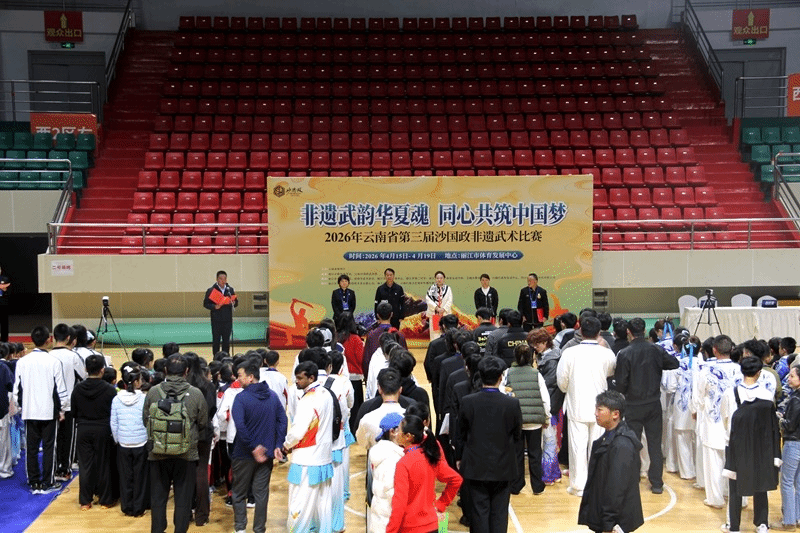 2026年4月15日至4月19日,云南省教育厅主办的“2026年云南省第三届沙国政非遗武术比赛”在丽江市体育发展中心举行,全省16个州市80余支队伍、近千余名运动员参加。